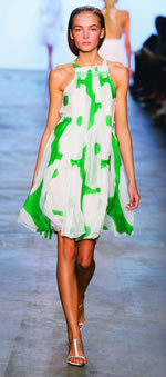 Ornate, white embroidery frosts a shimmering chartreuse version at Proenza Schouler.