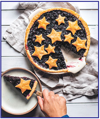 Juicy, sweet blueberries are the stars in this classic summertime pie. No added sugar is required! A touch of cinnamon complements the berries, and lemon zest adds brightness. It's delicious with a dollop of maple-vanilla whipped cream for a treat. The dough cutouts are optional, but if you wish to make them, save the scraps from the crust (or use an extra crust), roll them out to an 1/8-inch thickness, and cut out shapes with cookie cutters.