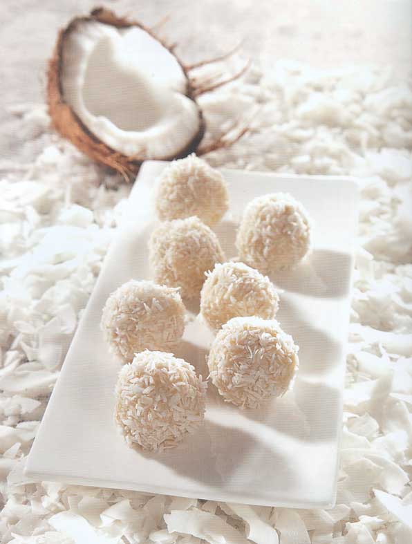 Use a teaspoon to dole out the praline mixture and roll into balls. Coat the pralines with the shredded coconut.