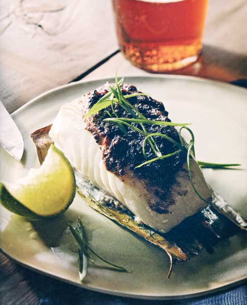 Heat a gas grill or start the coals for a charcoal grill 30 minutes before cooking the fish. When the grill is hot, oil the grate and place the fish, skin side down, on the medium-hot part of the grill. Cook for about 5 minutes and lift the edge of the fish with a spatula to see if it is ready to turn – the skin should be crisp and the fish will release easily from the grill. Rub the grate with a bit more oil and turn the fish over to finish cooking, about 3 minutes. The fish can also be sautéed in a hot pan with olive oil using the same technique.