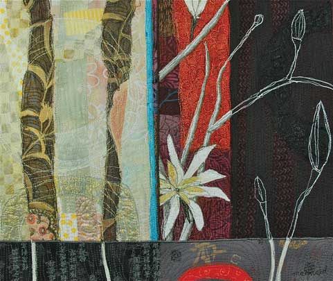 Whether working with paint, fabric or pages of discarded books, Maynard's work is brightly colored and bold, often underling the drama of the natural world by the use of contrast between lights and darks. While her work can be playful, it's always elegantly composed.
