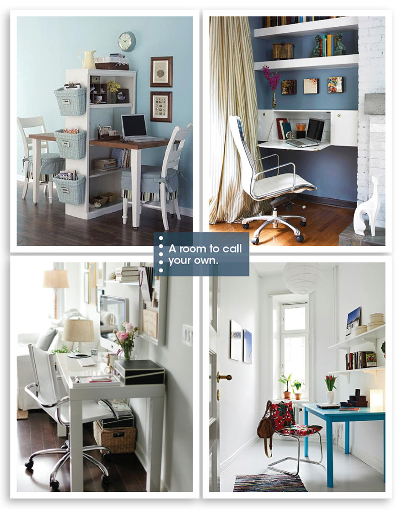 4. Think of typically neglected areas to make up for limited space. Look up! Are you using the vertical space (great for shelves)? How about the corners (just right for a desk)?