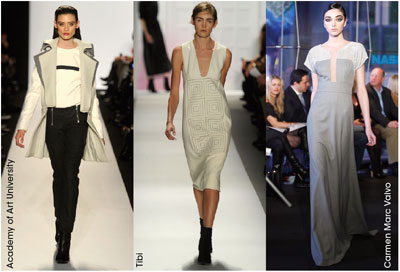 The key to pulling this off in a not-so-bland way is to wear the subtle colors in a dramatic manner. To make these garments more daring, try pieces with deep necklines and multiple layers to contrast with the simple hues.