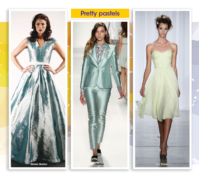 These soft hues are no longer reserved for Easter Sunday. Delicious blouses and dresses in lavender, yellow and sky blue were all the rage at fashion week.