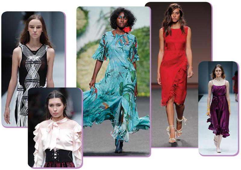 Ruffles, feathers and fringe were strong in fall and have held on for spring. From necklines to hemlines, fringing is a major statement.