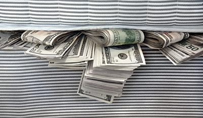As I approached the pizzeria I buried my hands deep in the coat pockets to press the memories of Aunt Harriette closer to me. My hands felt something and I pulled out a thick brick of $100 bills from both pockets. A rocket of excitement shot from my stomach to my heart. The money must be in the other coats’ pockets too, I thought.